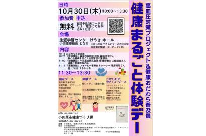 - 小田原市の健康課題は、脳血管疾患や心疾患の死亡率が高いことと、食塩摂取量が多いことです。これらの健康課題やその予防について、講演や体験を通して楽しく学べるイベントを開催します。